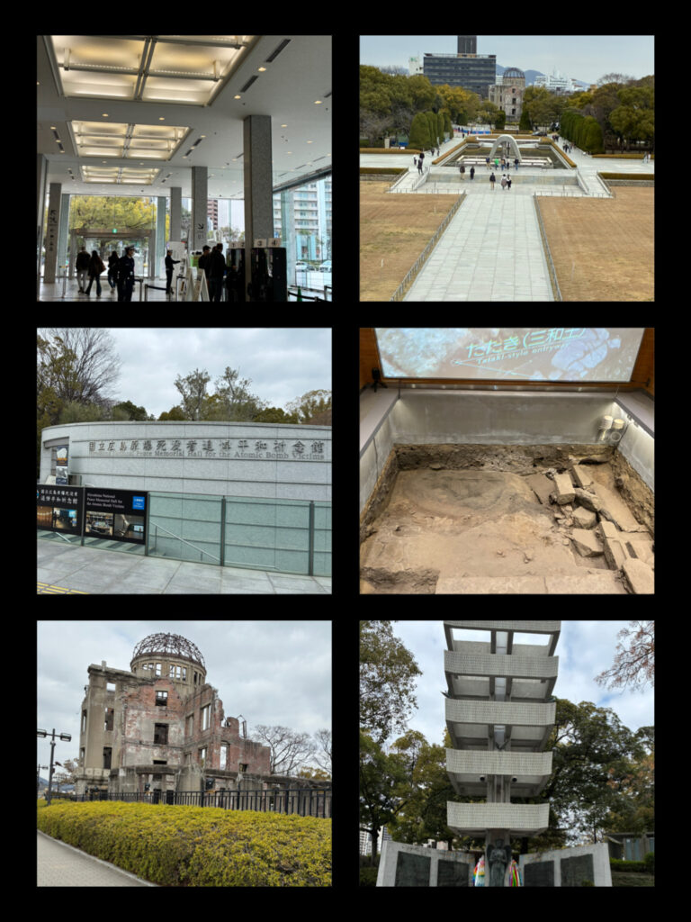 左の写真がグランドプリンスホテル広島で撮影したもの、右半分がサミット記念館で撮影したものです。G7首脳とゼレンスキー大統領が平和記念資料館を見学した感想メモを見ることができます。