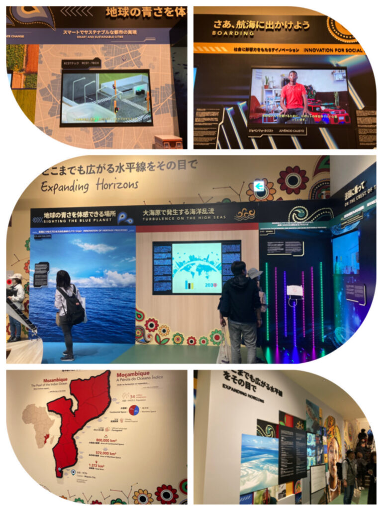 米国パビリオンを出て、モザンビークパビリオンに入場しました。アフリカはイギリス・フランスの植民地が多いですが、モザンビークはポルトガルの植民地だったようで、公用語もポルトガル語です。