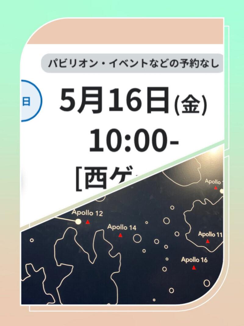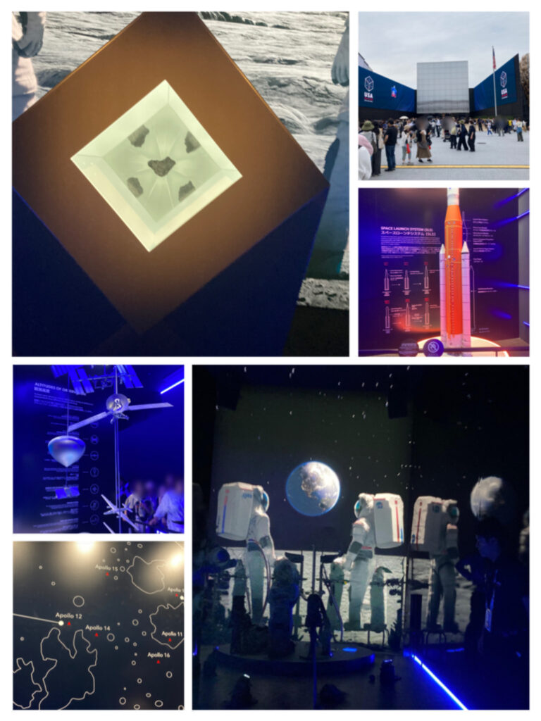 イタリアパビリオンを見終わった後、米国パビリオンに行きます。待ち時間は2時間を見込んでいましたが、90分で入場できました。壁面の液晶画面の画像を見ながら待っていたので、それほど待ち時間も苦になりませんでした。