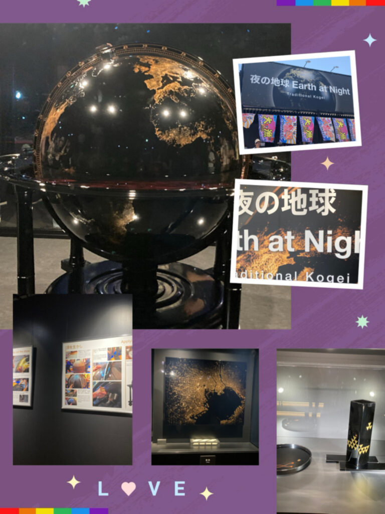 この地球儀は37人の職人が5年をかけて作り上げたもので、直径は1メートル。黒と金の見事なコントラストが目を引き、その美しさに思わず見入ってしまいました。さらに、この地球儀は2024年の能登半島地震でも無傷だったため、「奇跡の地球儀」とも呼ばれているそうです。