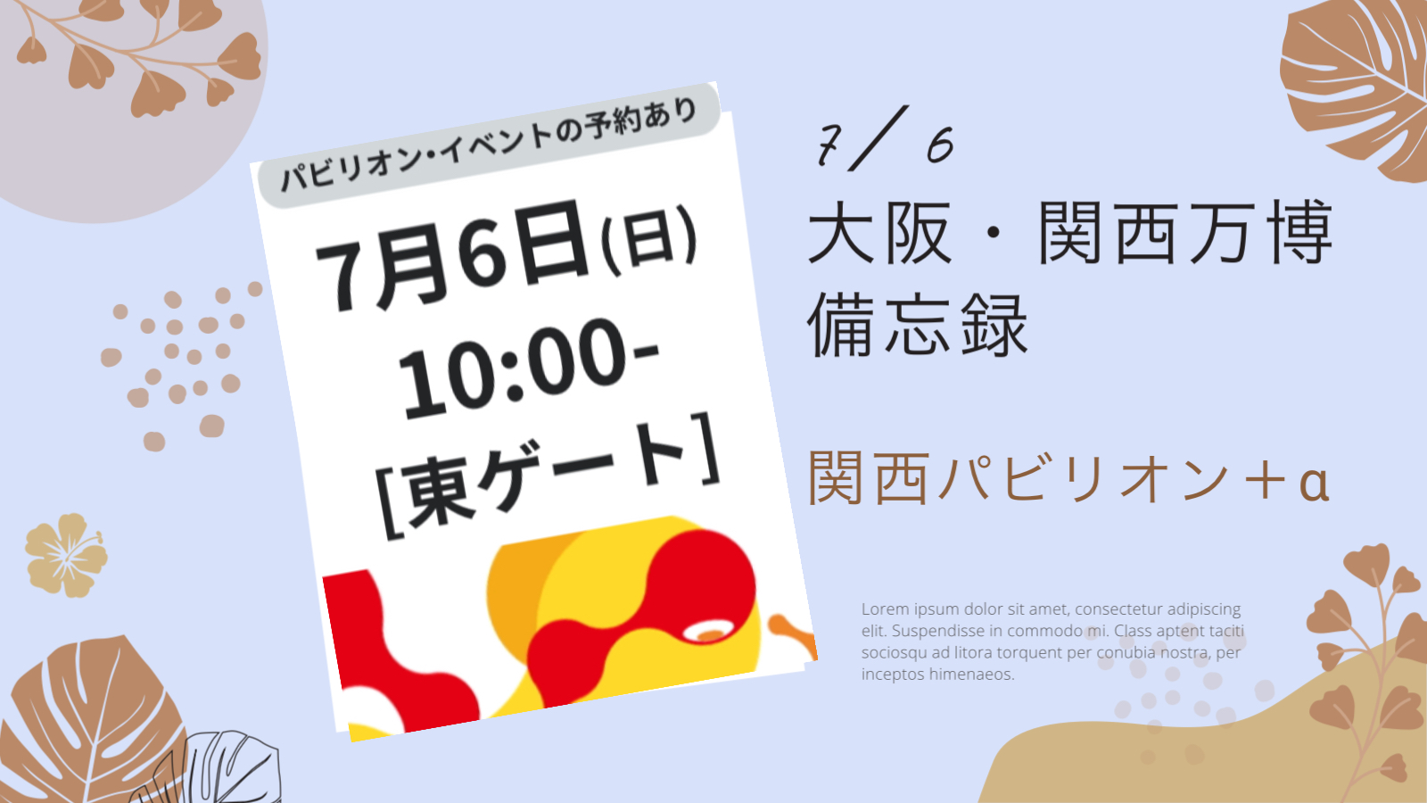 さて、今回は7月6日備忘録第2弾。「関西パビリオン」を紹介します。ナナさんの主観を元に記載しています。ご了承ください。