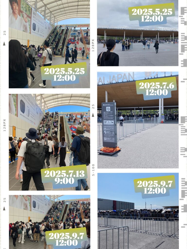 夢洲駅に正午到着。アナウンスは「入場まで2時間待ち」私の予想は1時間半。結果は予想ドンピシャ入場できました。紙チケットむっちゃ楽でした。