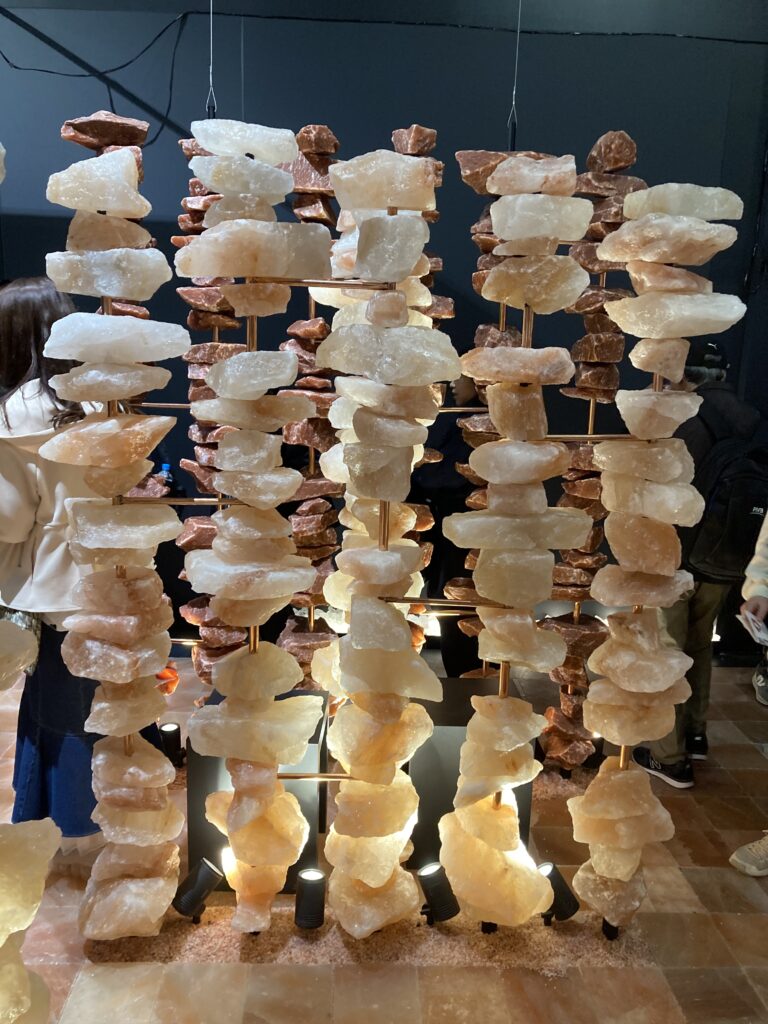 パキスタン館は「展示物や床も含めてすべて岩塩でできている」と万博開幕前から話題になっていました。実際に訪れると待機列ができ、入場制限も。解除を待っていざ中へ入ると、本当に壁一面が岩塩!光に透けて幻想的で、思わず圧倒されました。